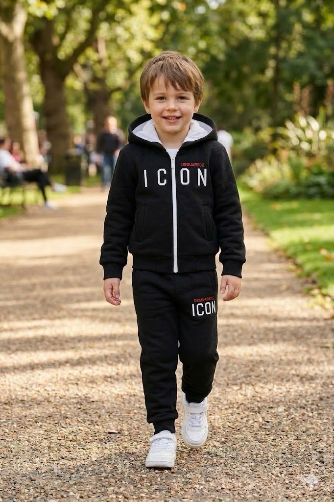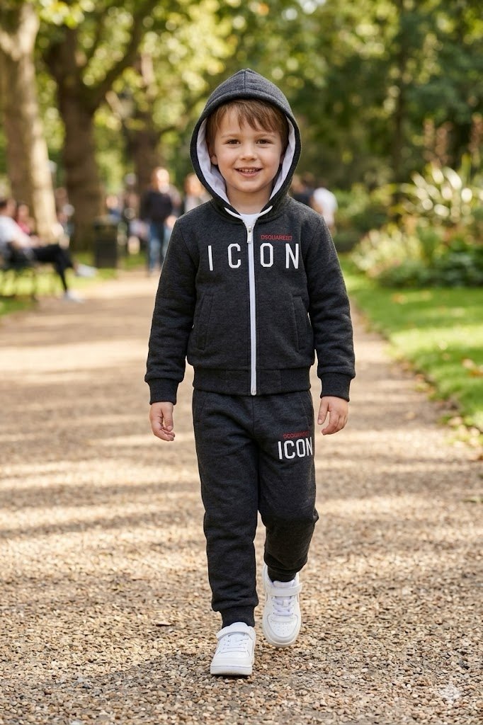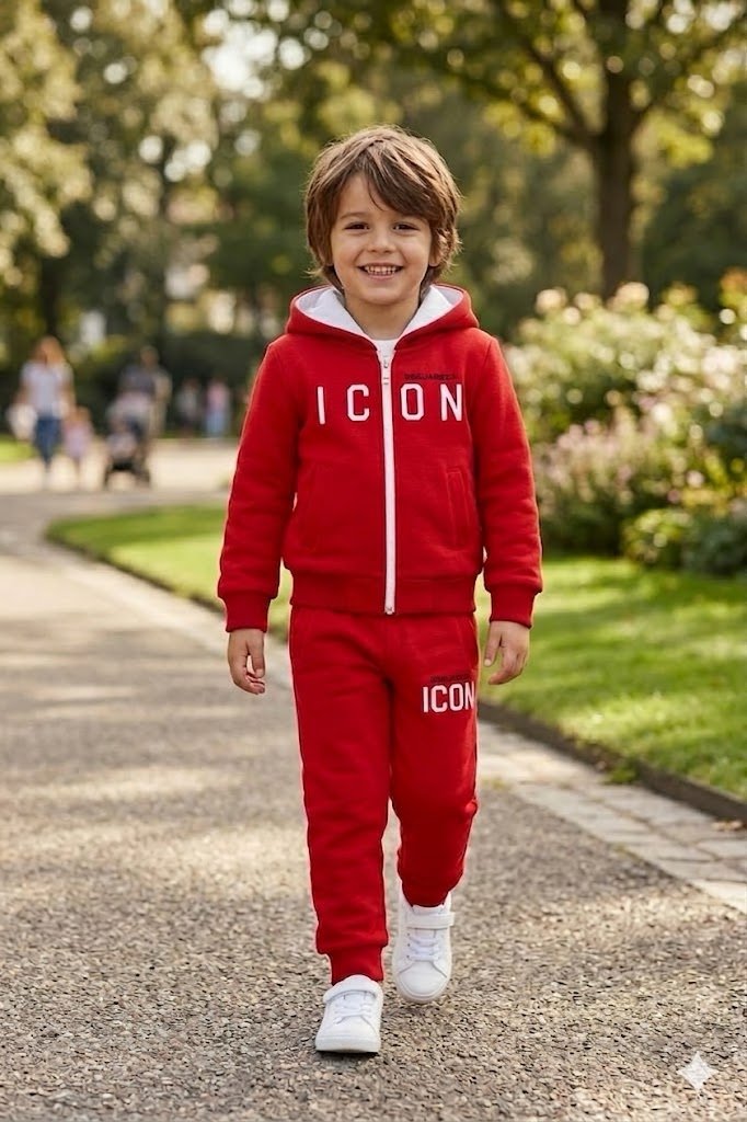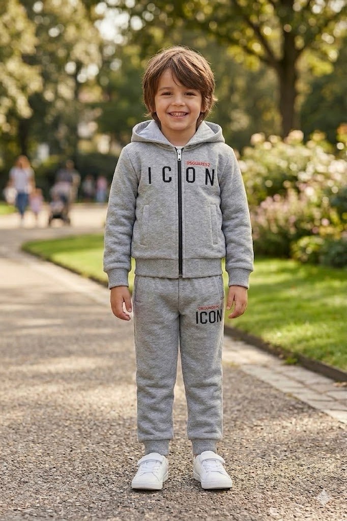 Удобен и стилен спортен екип за момче, изработен от мек и дишащ памук, който осигурява комфорт през целия ден. Комплектът включва горнище с цип и качулка, долнище с ластичен колан и връзки за регулиране. Подходящ за спорт, детска градина и ежедневни разходки. Класически и практичен екип, който съчетава удобство и спортна визия!