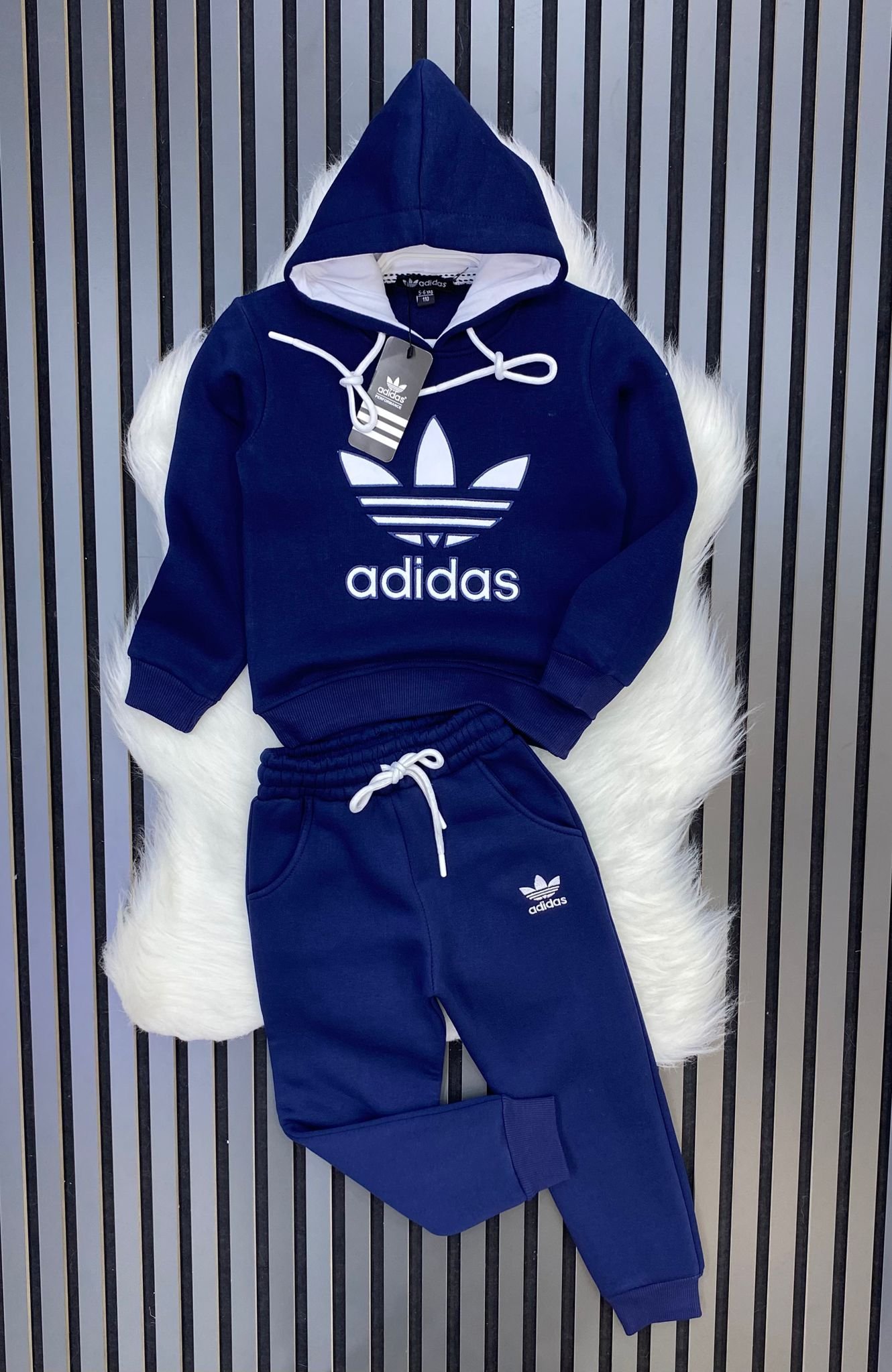 Спортен ватиран екип за момче, изработен от мек и топъл памучен плат с вътрешна вата. Комплектът включва суитчър с качулка, долнище с ластичен колан и връзки за регулиране. Горнището и долнището са с ефектна бродирана нашивка, с емблематичното лого на бранда. Идеален избор за ежедневие, спорт и разходки. Подходящ за сезон есен-зима.
