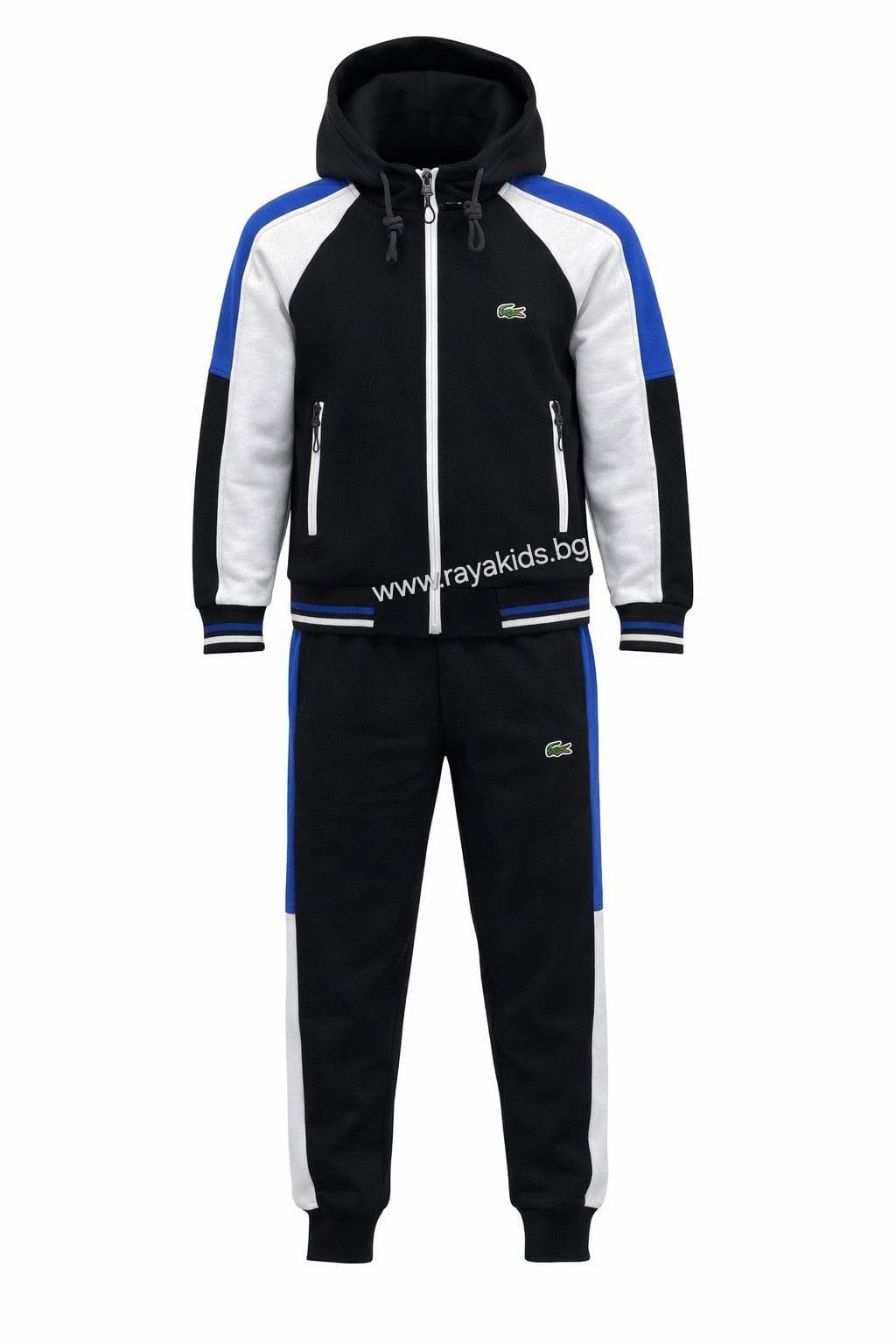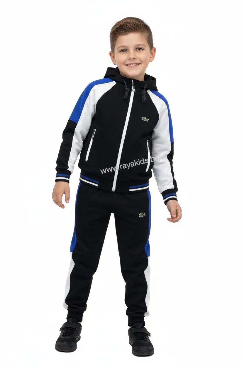 Комфортен и стилен детски екип за момчета, създаден за активно ежедневие, спорт и игри. Комплектът включва горнище с дълъг ръкав, качулка и цип по цялата дължина и удобно долнище, които осигуряват практичност и лекота.