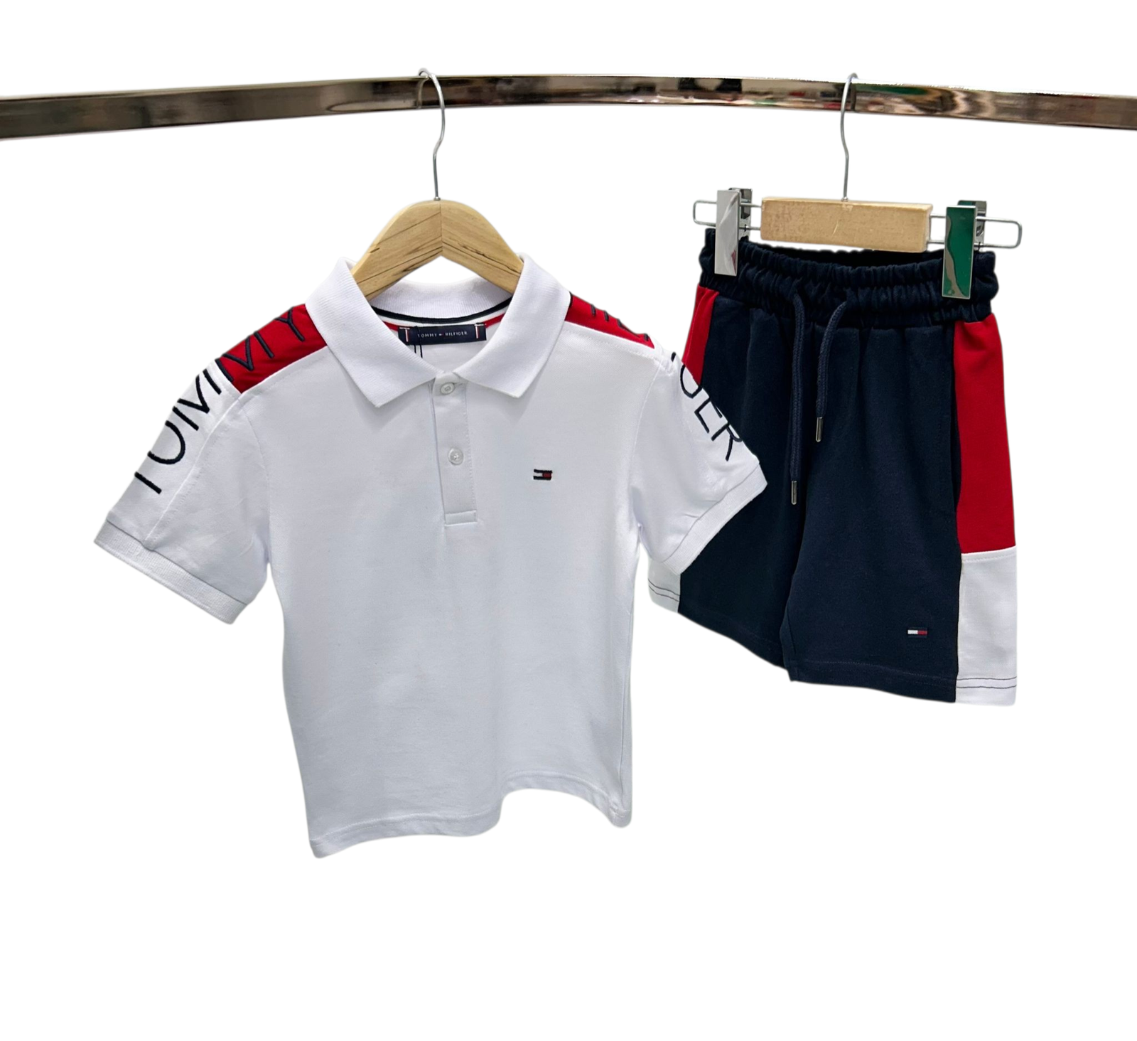 Модерен комплект за момчета, състоящ се от поло тениска, къси панталони с ластична талия и връзки за перфектно прилягане. Изработен от висококачествено памучно пике, комплектът е изключително мек, дишащ и нежен към детската кожа. Материята осигурява отличен комфорт през целия ден – идеален избор както за ежедневие, така и за специални поводи.