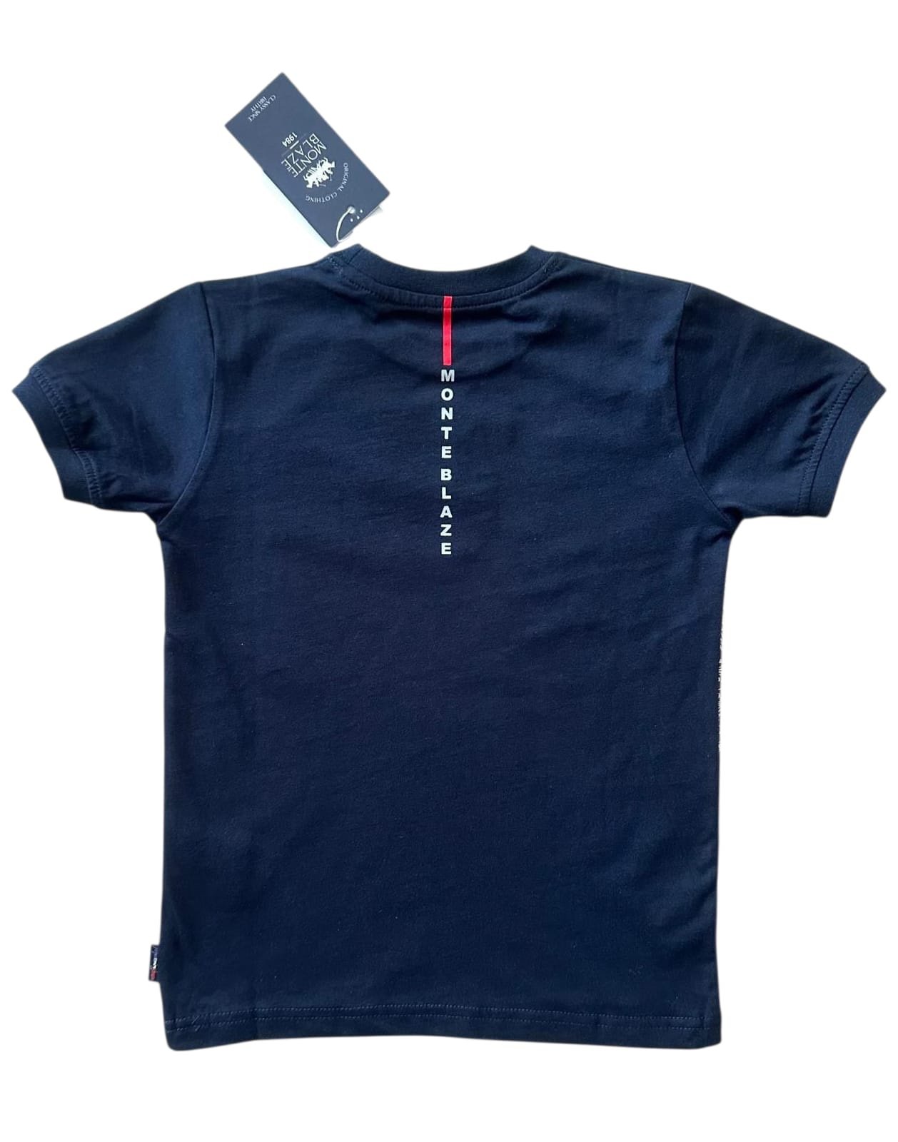 Детска тениска Monte Blaze със стилен принт отпред, с логото на марката. Тениска е с обло бие и права кройка, изработена от висококачествена памучна материя. Подходяща за спортна и елегантна визия, удобна и комфортна.