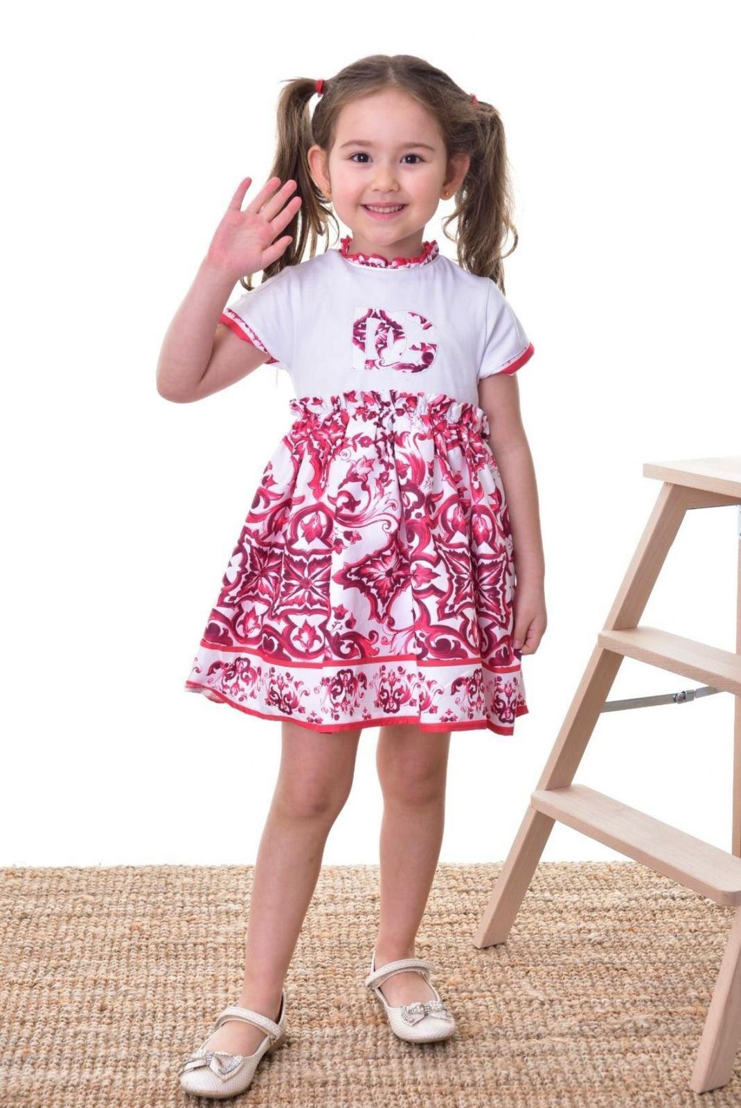Детска рокля DC GB с къс ръкав, от колекция лято! Роклята е с елегантен принт и цип отзад, за лесно обличане. Подходяща за ежедневни разходки и специални поводи.