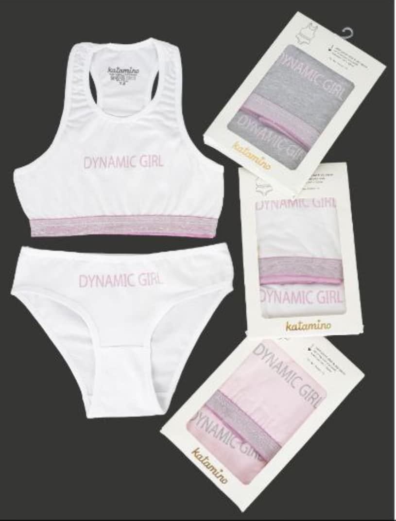 Състои се от къс потник и бикини. Изработен от еластична памучна материя. Състав: 95% памук, 5% еластан.