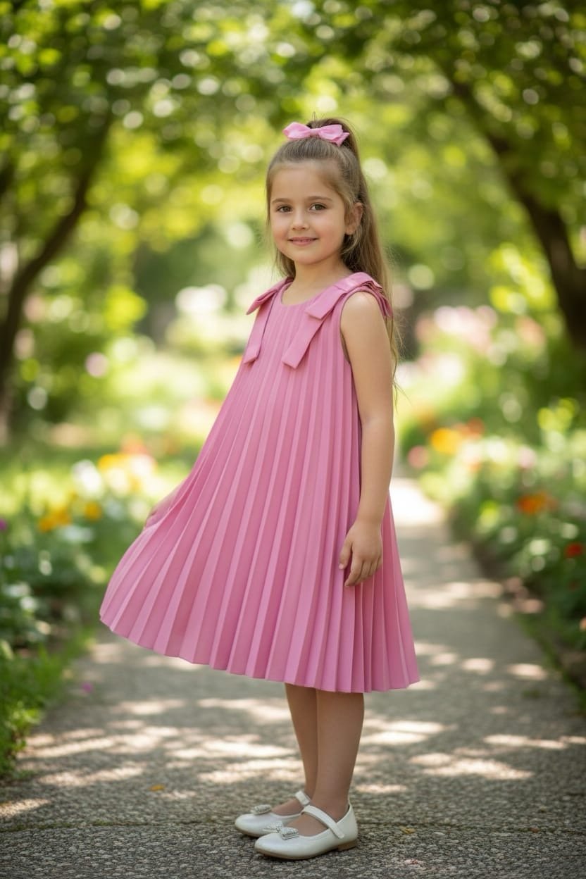 Лека и ефирна рокля солей, създадена за малките дами, които обичат стил и свобода на движение. Моделът е с тънки презрамки, които придават изискан и нежeн силует, а декоративните панделки върху тях добавят фин и очарователен акцент. Роклята е подходяща за ежедневни и празнични поводи, като съчетава комфорт и стил, създавайки ефектна и нежна визия за всяко момиче.