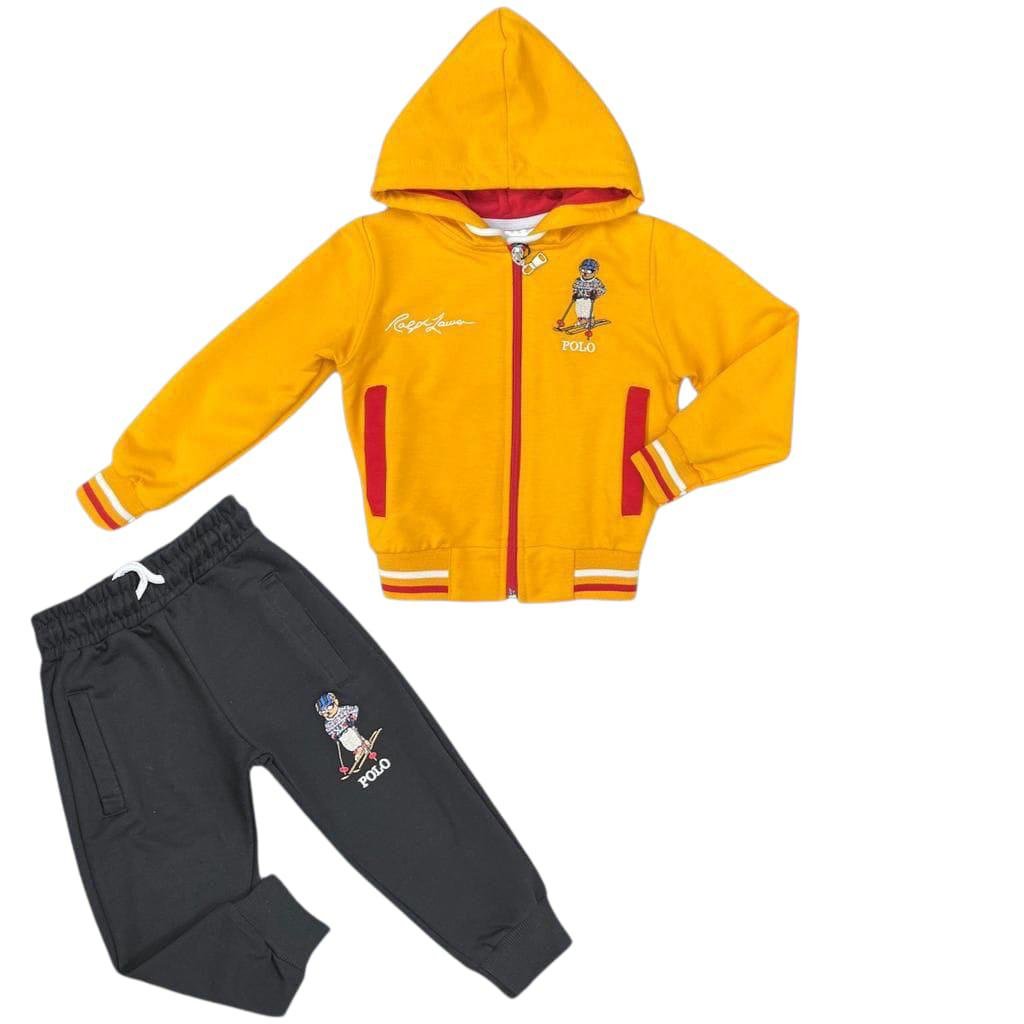 Удобен и стилен спортен екип за момче, изработен от мек и дишащ памук, който осигурява комфорт през целия ден. Комплектът включва горнище с цип и качулка, долнище с ластичен колан и връзки за регулиране. Подходящ за спорт, детска градина и ежедневни разходки. Класически и практичен екип, който съчетава удобство и спортна визия!