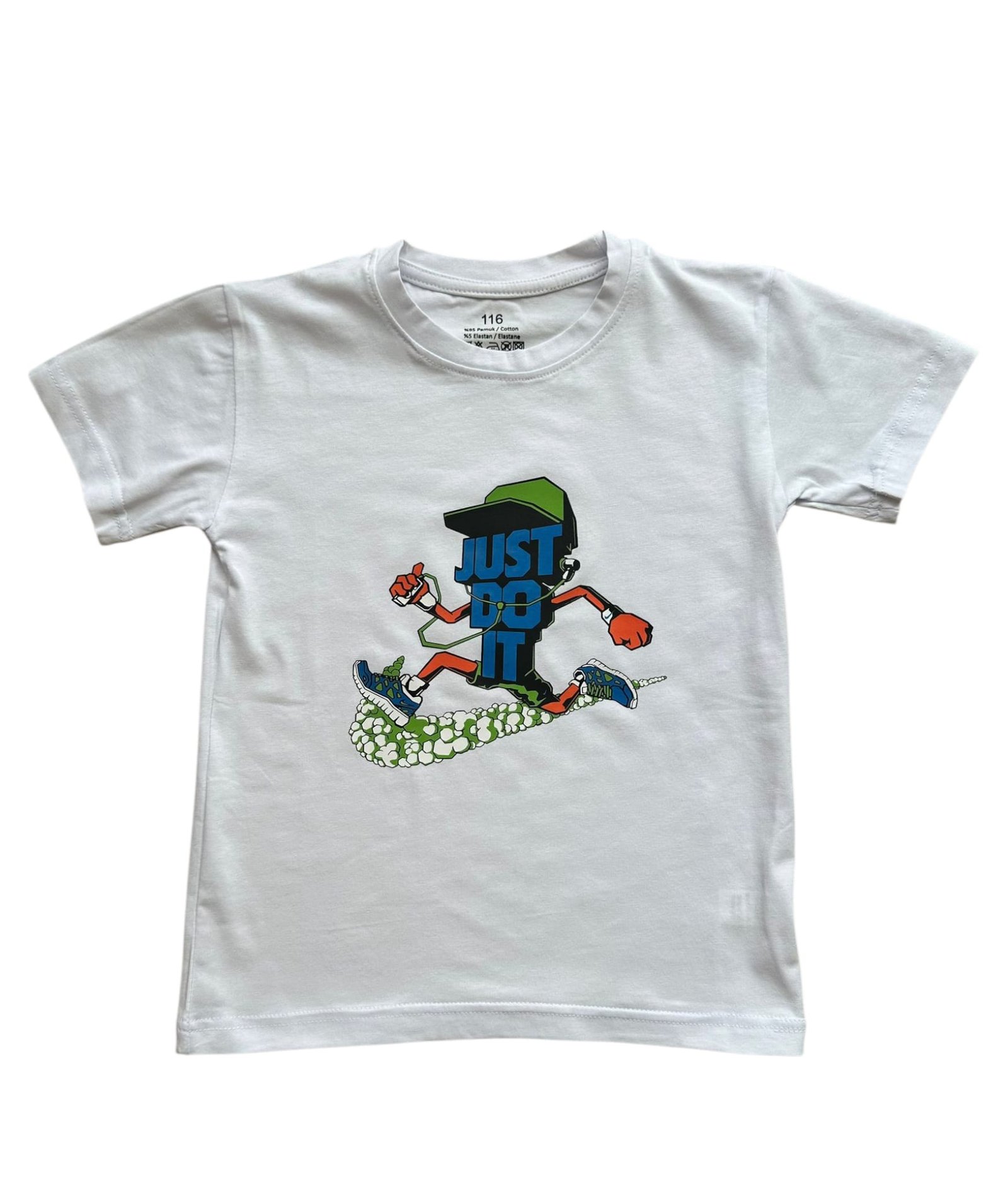 Детската тениска за момче е с къс ръкав, обло бие, права кройка и щампа отпред. Детската тениска за момче е изработена от висококачествена памучна материя, удобна и комфортна.
