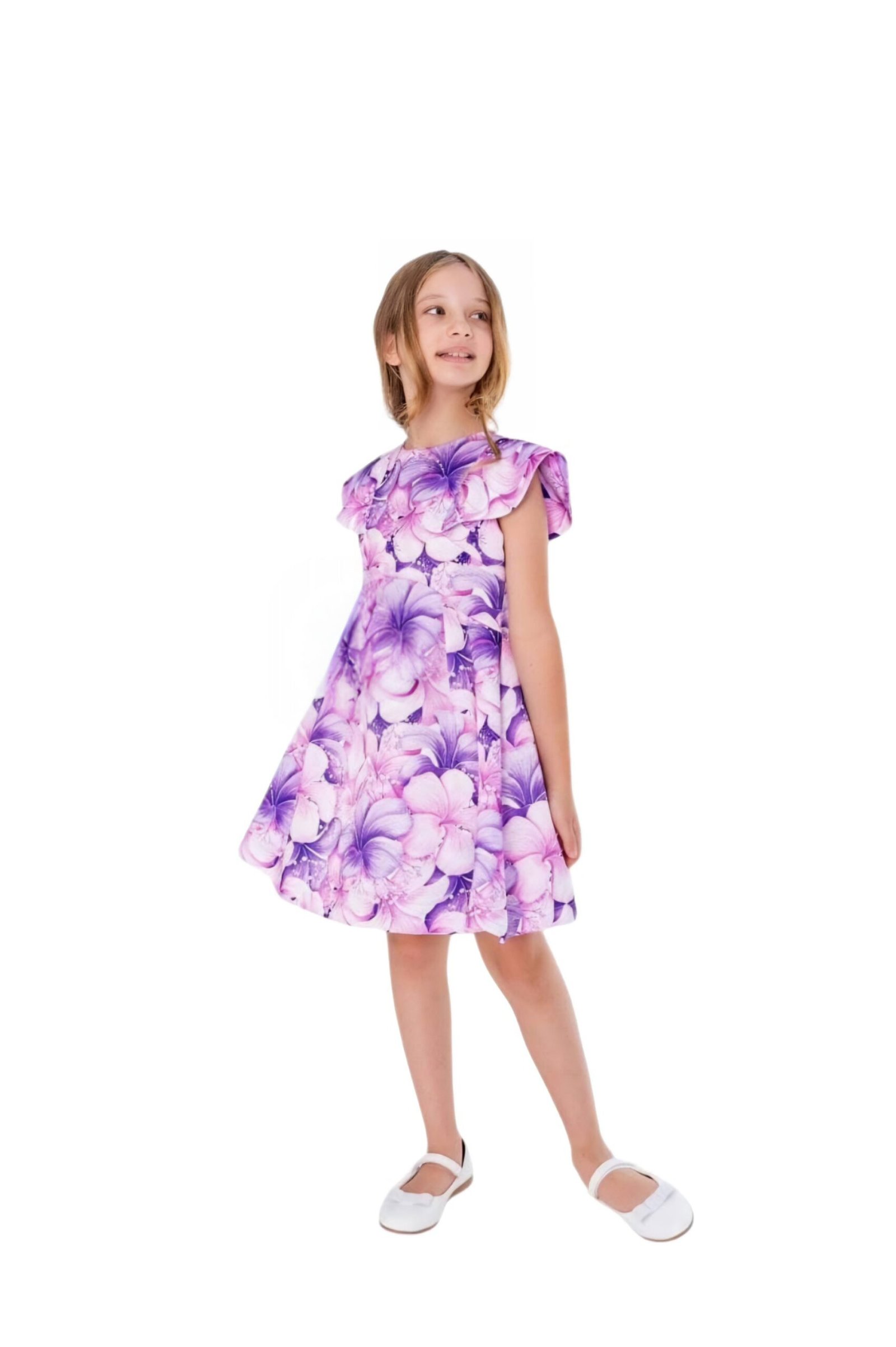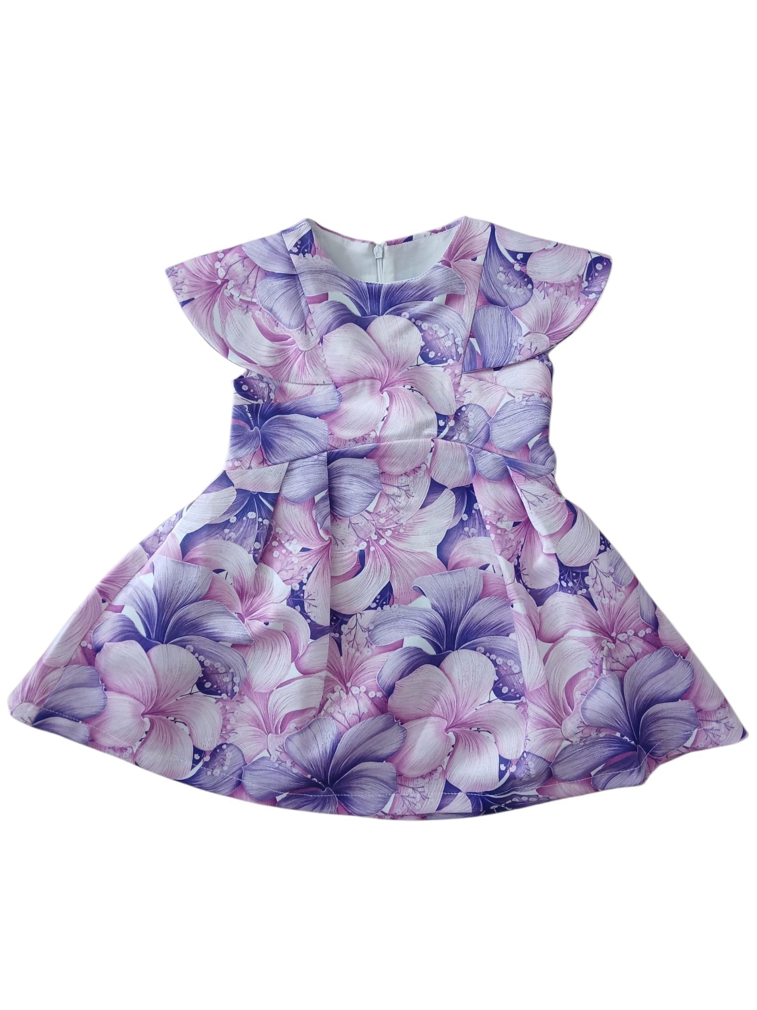 Вземи детска елегантна рокля от колекция Пролет-Лято! Елегантна рокля с къс ръкав, разкроена в долната част и принт на цветя. Роклята е изработена висококачествена и комфортна материя, подходяща за специални поводи и разходки.